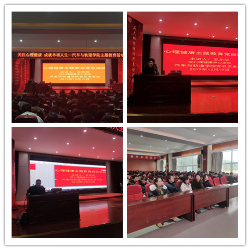 为了普及心理健康知识,增强师生的心理保健与心理调节能力,12月19日,汽车与轨道学院党总支特邀大学生心理健康中心主任王东华老师在综合楼一楼报告厅为我院300余名师生带来了一场专业的心理健康教育讲座。