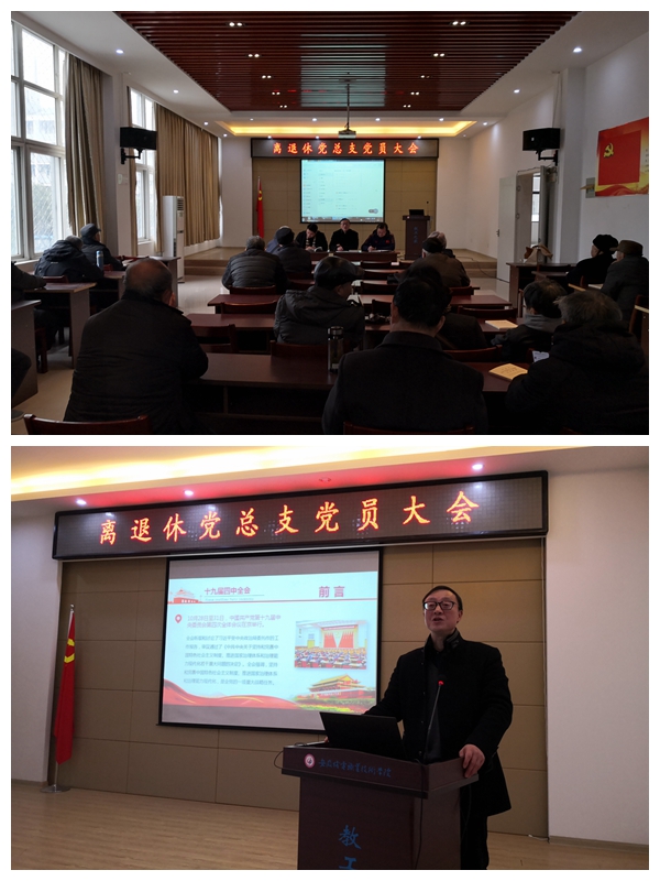 新年伊始,万象更新。1月7日下午,室外寒雨潇潇,室内暖意融融,离退休党总支在校教工之家多功能活动厅召开党员大会,总支书记宁勇敏宣讲了题为“坚定制度自信凝聚奋斗力量——党的十九届四中全会精神解读”的报告,老党员们聚精会神,认真倾听了宣讲报告。