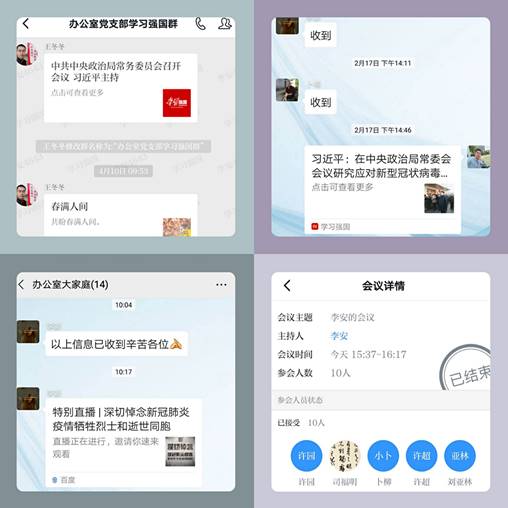 这样特殊的“面对面”学习是疫情防控期间支部开展学习形式的创新。虽然是“线上”学习,但并没有因此放松组织标准。会议前由支委班子共同拟定会议议程,精炼学习材料,会议中全体党员能够保持严肃的态度,认真学习记录,希望大家会后能够不断“温故而知新”,进一步提升党性修养和工作热情。